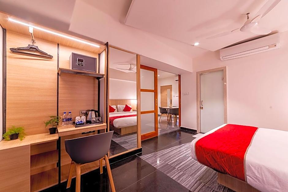 The suite provides a TV with cable channels, a mini-bar, a tea and coffee maker, a dining area as well as city views.